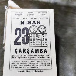 23 NİSAN 1975 SAATLİ MAARİF TAKVİM YAPRAĞI
