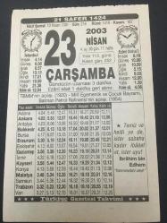 23 NİSAN 2003 -TAKVİM YAPRAĞI-DOĞUM GÜNÜ HEDİYESİ,TÜRKİYE GAZETESİ TAKVİMİ,TBMM NİN AÇILIŞI,1920,MİLLİ EGEMENLİK VE ÇOCUK BAYRAMI,BATMAN PETROL RAFİNESİNİN AÇILIŞI,1954, başlıklı ürün, Efemera, Müzik, Sinema > Belge ve Evraklar > Takvimler kategorisi altında İkinci El olarak satılmaktadır.