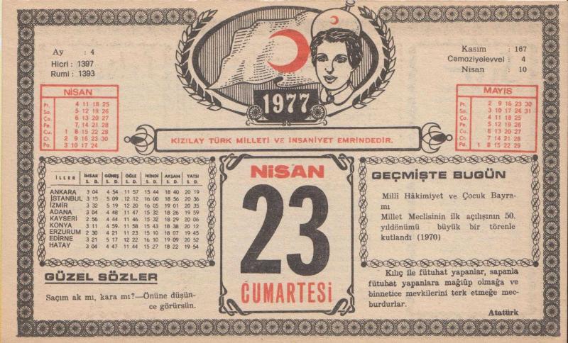 23 Nisan 1977 - Kızılay Takvim Yaprağı, 3 gün önce satışa sunulmuştur.