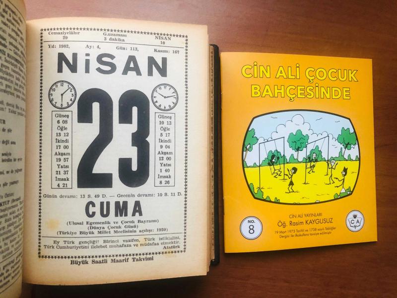 23 Nisan 1982 hediyelik orijinal Saatli Maarif takvim yaprağı (Cin Ali kitabı hediyeli:), en son 7 ay önce güncellenmiştir.