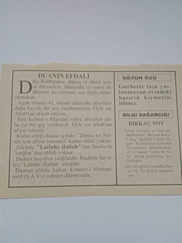 23 Ocak 1995-Orijinal Takvim Yaprağı-Doğum Günü-Söz,Nişan,Nikâh,Düğün ve Önemli Günler Hediyesi-Fatih Hak ve Hizmet Vakfı-Ayet/Hadis(Enfâl:28)-Duanın Efdali-Sözün Özü-Birkaç Not, 6 gün önce satışa sunulmuştur.