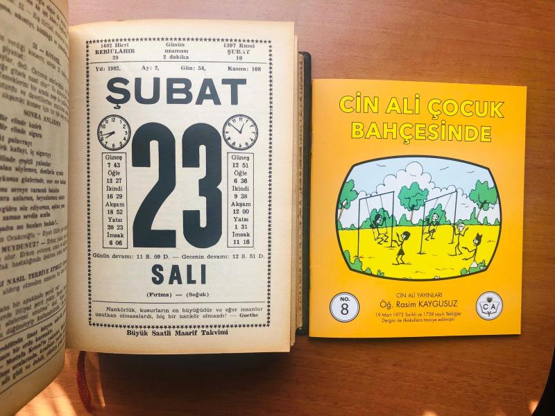 23 Şubat 1982 hediyelik orijinal Saatli Maarif takvim yaprağı (Cin Ali kitabı hediyeli:), en son 7 ay önce güncellenmiştir.