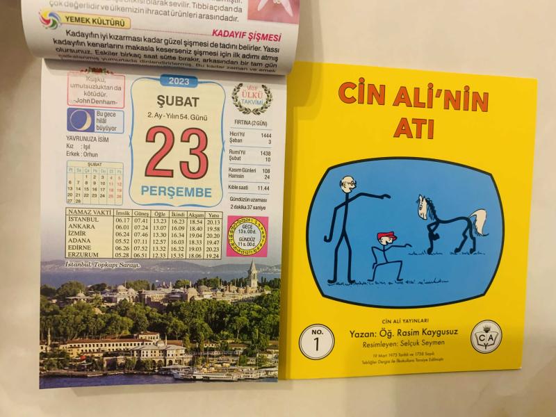 23 Şubat 2023 hediyelik orijinal Ülkü takvim yaprağı (Cin Ali kitabı hediyeli:) başlıklı ürün, Efemera, Müzik, Sinema > Belge ve Evraklar > Takvimler kategorisi altında İkinci El olarak satılmaktadır.