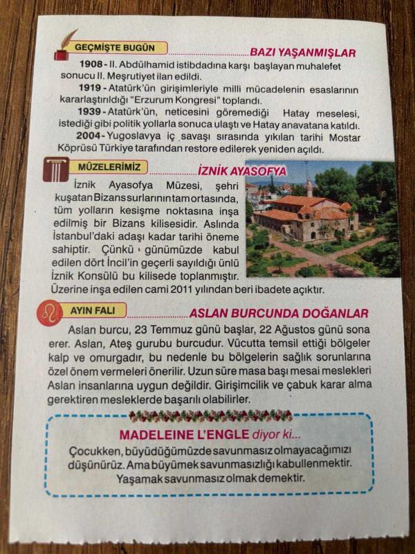 Orijinal takvim yaprağıdır.