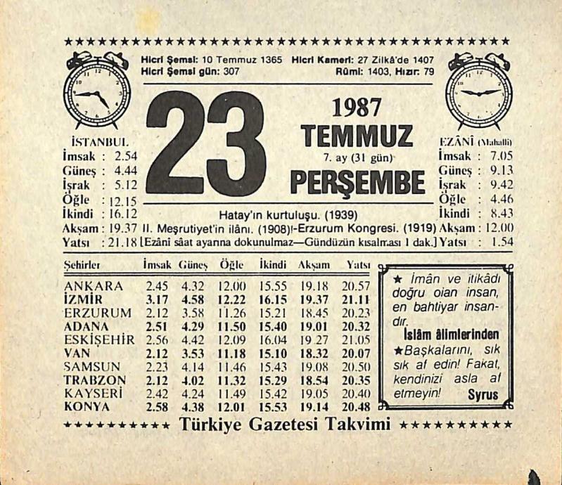 23 Temmuz 1987 Takvim Yaprağı - Doğum Günü Hediyesi EFMN13835, en son 21 gün önce güncellenmiştir.
