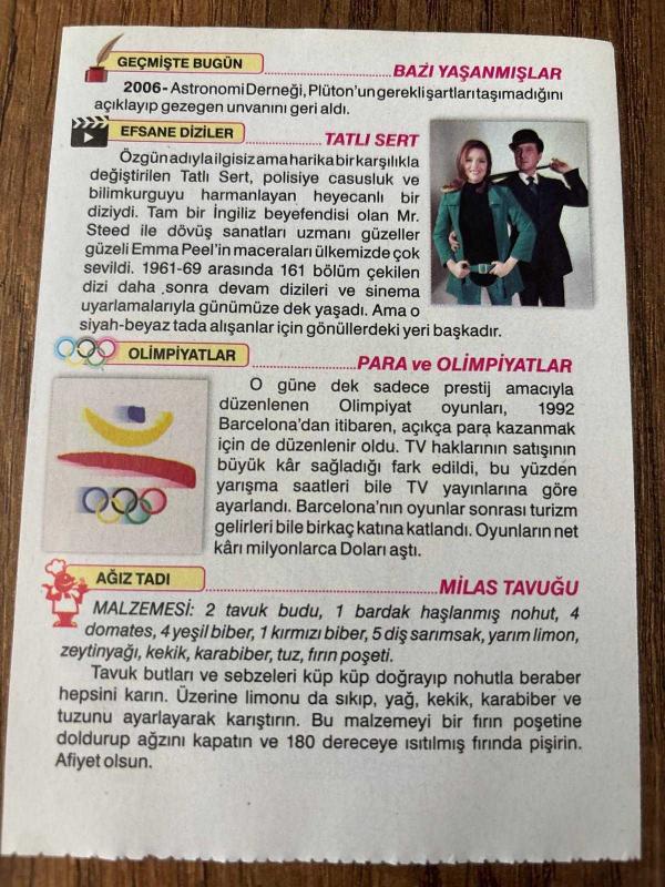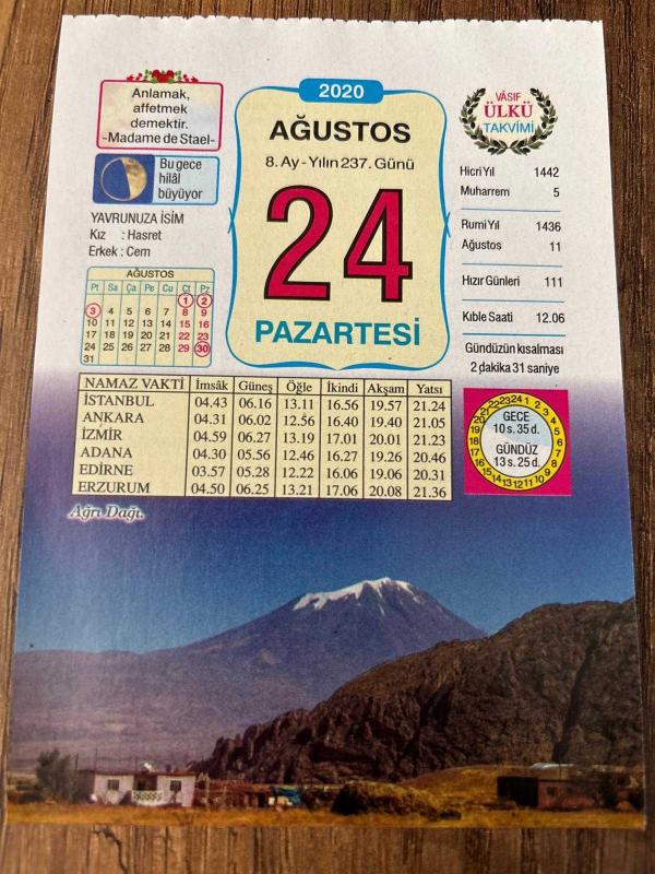 24 AĞUSTOS 2020 - TAKVİM YAPRAĞI - DOĞUM GÜNÜ HEDİYESİ - BÜYÜK SAATLİ MAARİF TAKVİMİ -AĞRI DAĞI - 2006- Astronomi Derneği, Plüton'un gereklişartlarıtaşımadığını açıklayıp gezegen unvanını geri aldı -PARA ve OLİMPİYATLAR - MİLAS TAVUĞU başlıklı ürün, Efemera, Müzik, Sinema > Belge ve Evraklar > Takvimler kategorisi altında İkinci El olarak satılmaktadır.