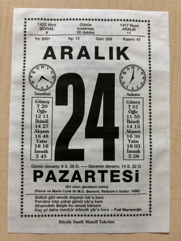 24 ARALIK 2001 - TAKVİM YAPRAĞI - DOĞUM GÜNÜ HEDİYESİ - BÜYÜK SAATLİ MAARİF TAKVİMİ - FUAT BAYRAMOĞLU - OKTAY FIRAT - BUGÜN YAŞA ADLI YAZI - YERİNDE SORU ADLI YAZI, en son 8 ay önce güncellenmiştir.