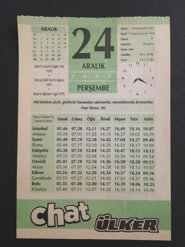 24 ARALIK 2009 -TAKVİM YAPRAĞI-DOĞUM GÜNÜ HEDİYESİ-ÜLKER TAKVİMİ,4.MURADIN BAĞDATI FETHİ 1638,TEVFİK FİKRETİN DOĞUMU 1867,RUSLARIN AFGANİSTANI İŞGALİ 1979,ÇOCUĞUNUZUN İSMİ,AVCI TAVUĞU, en son 8 ay önce güncellenmiştir.
