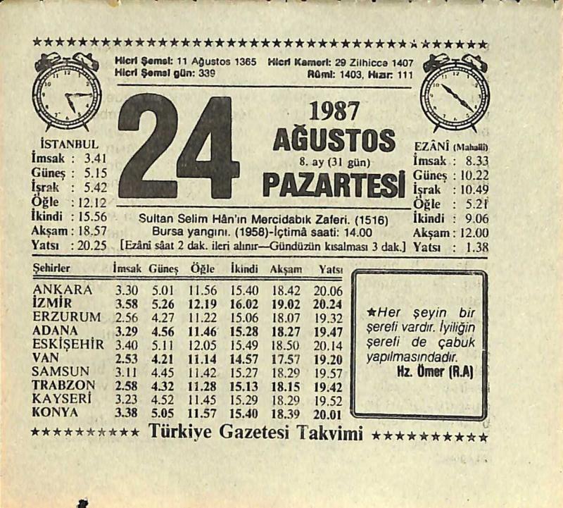 24 Ağustos 1987 Takvim Yaprağı - Doğum Günü Hediyesi EFMN13928, en son 21 gün önce güncellenmiştir.