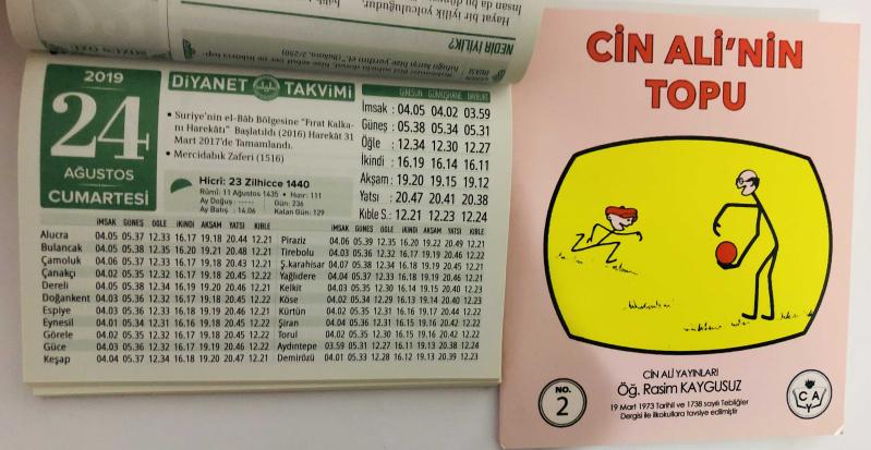 24 Ağustos 2019 hediyelik orijinal Diyanet takvim yaprağı (Cin Ali kitabı hediyeli:), 3 yıl önce satışa sunulmuştur.