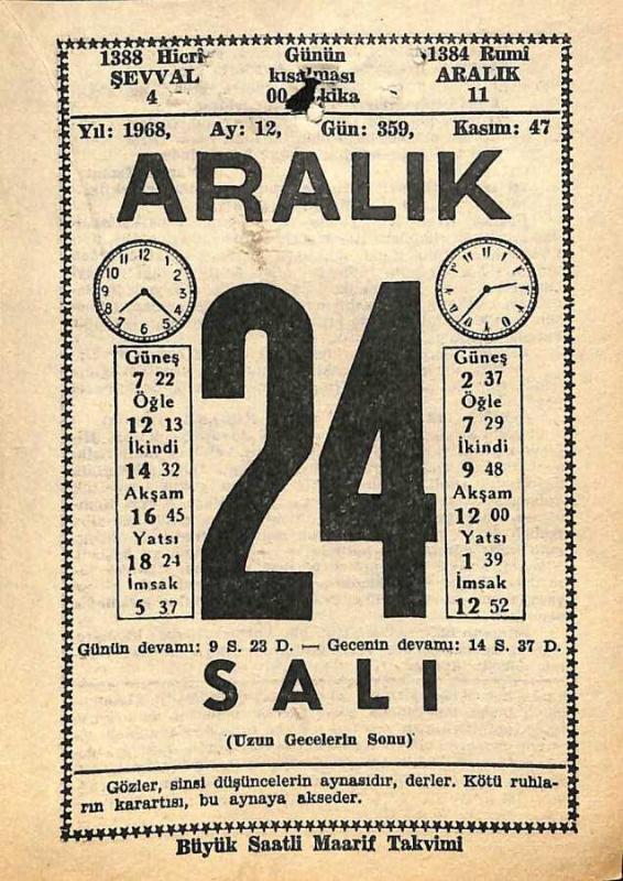 24 Aralık 1968 Takvim Yaprağı - Doğum Günü Hediyesi EFM(N)11052, en son 19 gün önce güncellenmiştir.