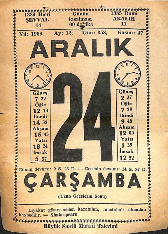 24 Aralık 1969 Takvim Yaprağı - Doğum Günü Hediyesi EFM(N)11381, en son bir ay önce güncellenmiştir.