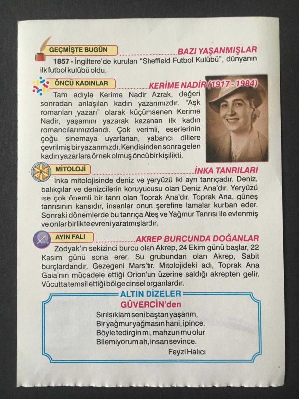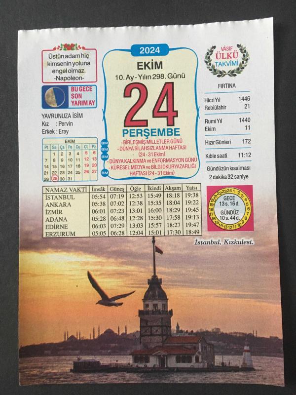 24 EKİM 2024 -TAKVİM YAPRAĞI-DOĞUM GÜNÜ HEDİYESİ-VASIF ÜLKÜ TAKVİMİ,İSTANBUL KIZKULESİ,YAVRUNUZA İSİM,SHEFFİELD DÜNYANIN İLK FUTBOL KULÜBÜ OLDU,1857,KERİME NADİR 1917-1984,İNKA TANRILARI,AKREP BURCUNDA DOĞANLAR,GÜVERCİN DEN, 1 yıl önce satışa sunulmuştur.