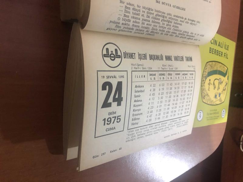 24 Ekim 1975 hediyelik orijinal Diyanet takvim yaprağı (Cin Ali kitabı hediyeli:), en son 7 ay önce güncellenmiştir.