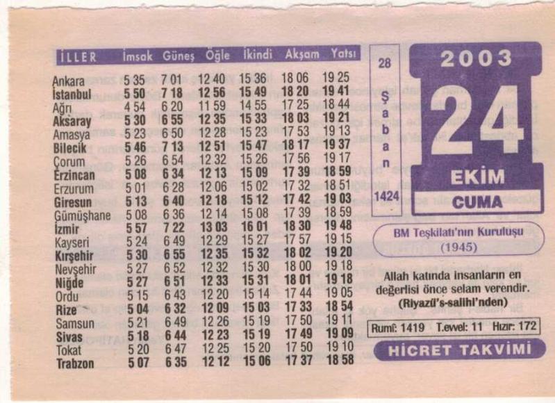 24 Ekim 2003 Takvim Yaprağı EFM(N)3726, en son 19 gün önce güncellenmiştir.