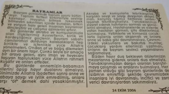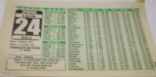 24 Ekim 2006-Orijinal Takvim Yaprağı-Doğum Günü-Söz,Nişan,Nikâh,Düğün ve Önemli Günler Hediyesi-Bizim Anadolu Takvimleri-Ayet(S.Ahmed Arvasi)-Ramazan Bayramı 2.Gün-İdris,Sadıka-Bayramlar, en son bir ay önce güncellenmiştir.