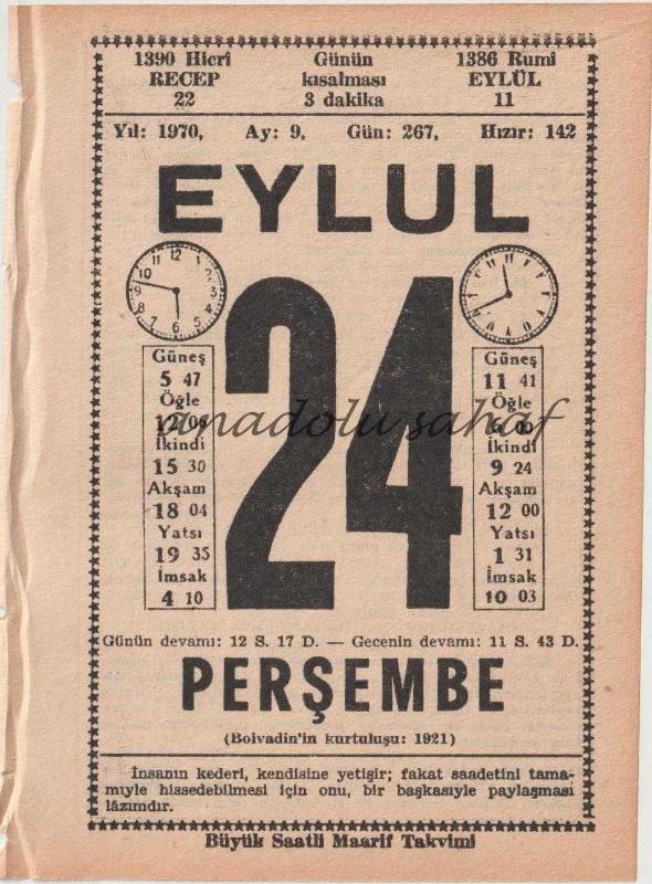 24 Eylül 1970 / Büyük Saatli Maarif Takvimi