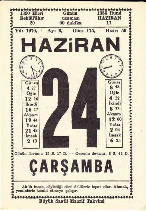 24 HAZİRAN 1970 SAATLİ MAARİF TAKVİMİ YAPRAĞI, en son 1 yıl önce güncellenmiştir.