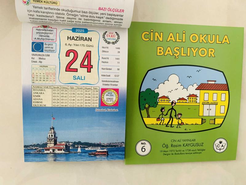 24 Haziran 2025 hediyelik orijinal Ülkü takvim yaprağı (Cin Ali kitabı hediyeli:), 9 ay önce satışa sunulmuştur.