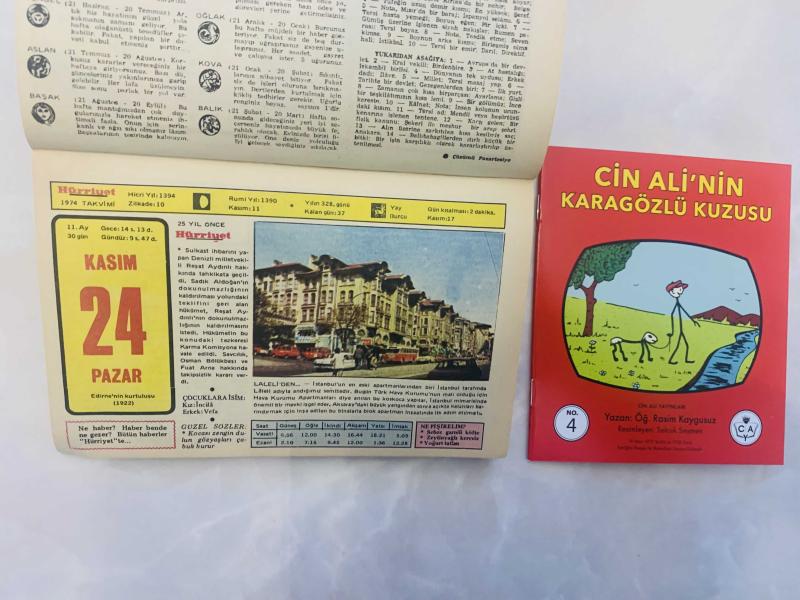 24 Kasım 1974 hediyelik orijinal Hürriyet takvim yaprağı (Cin Ali kitabı hediyeli:), 1 yıl önce satışa sunulmuştur.