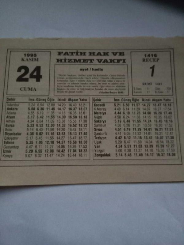 24 Kasım 1995-Orijinal Takvim Yaprağı-Doğum Günü-Söz,Nişan,Nikâh,Düğün ve Önemli Günler Hediyesi-Fatih Hak ve Hizmet Vakfı-Ayet/Hadis(Müslim/İmare 1841)-Receb Ayı-Sözün Özü-En Hayırlı, en son 4 ay önce güncellenmiştir.