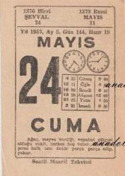 24 Mayıs 1957 / Saatli Maarif Takvimi, en son 1 yıl önce güncellenmiştir.