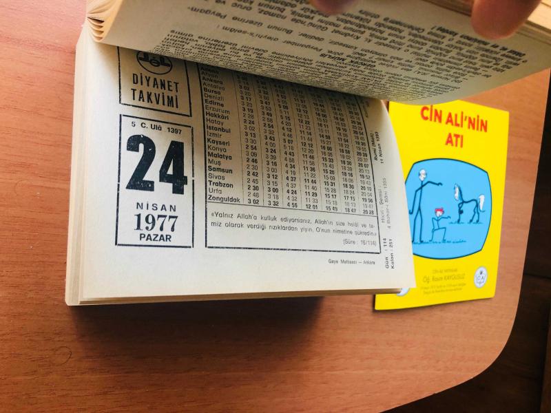 24 Nisan 1977 hediyelik orijinal Diyanet takvim yaprağı (Cin Ali kitabı hediyeli:), en son 7 ay önce güncellenmiştir.