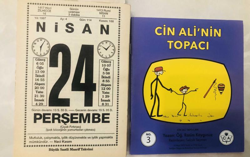 24 Nisan 1997 orijinal büyük boy Saatli Maarif takvim yaprağı (Cin Ali kitabı hediyeli :), 2 yıl önce satışa sunulmuştur.