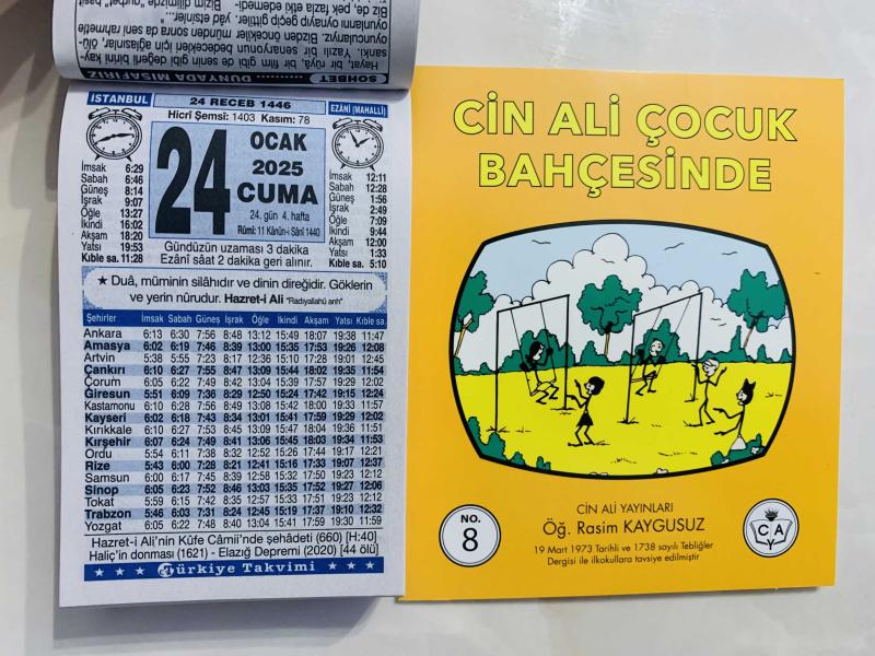 24 Ocak 2025 hediyelik orijinal Türkiye takvim yaprağı (Cin Ali kitabı hediyeli:), en son 7 ay önce güncellenmiştir.
