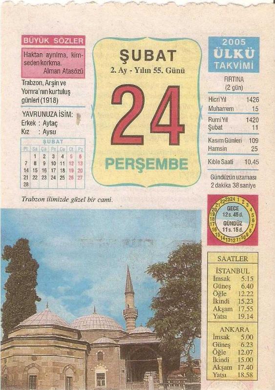 24 ŞUBAT 2005 ÜLKÜ TAKVİM YAPRAĞI, en son 1 yıl önce güncellenmiştir.