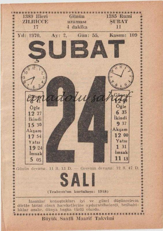 24 Şubat 1970 / Büyük Saatli Maarif Takvimi