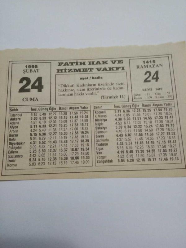 24 Şubat 1995-Orijinal Takvim Yaprağı-Doğum Günü-Söz,Nişan,Nikâh,Düğün ve Önemli Günler Hediyesi-Fatih Hak ve Hizmet Vakfı-Ayet/Hadis(Tirmizi:11)-Tarihte Sürat Rekorları-Sözün Özü-53 Milyon Bahşiş, en son 5 ay önce güncellenmiştir.
