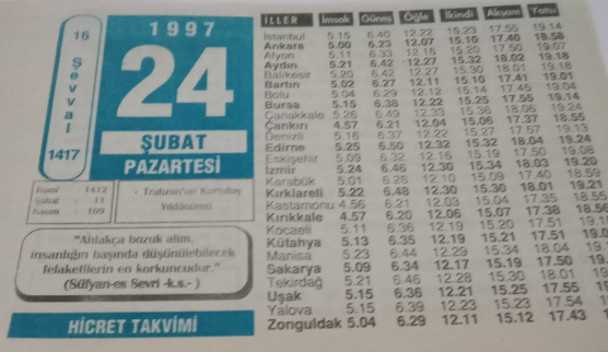 24 Şubat 1997-Orijinal Takvim Yaprağı-Doğum Günü-Söz,Nişan,Nikâh,Düğün ve Önemli Günler Hediyesi-Hicret Takvimi-Ayet(Hadis)-(Süfyan-es Sevri-k.s.-)-Trabzon'un Kurtuluş Yıldönümü-İdris Aleyhisselam-Esma'ül Hüsna'dan-Hz.Zeyneb(R.Anha-Hz.Muhammed(SAV), en son 24 gün önce güncellenmiştir.