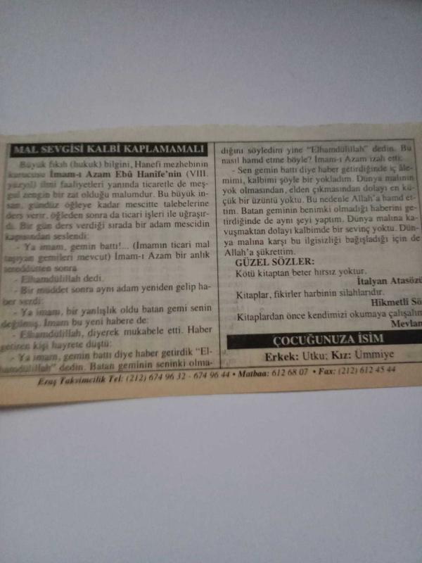 24 Şubat 2006-Orijinal Takvim Yaprağı-Doğum Günü-Söz,Nişan,Nikâh,Düğün ve Önemli Günler Hediyesi-ERAŞ Hizmet Takvimi-Ayet-Hadis(Trabzon'un Kurtuluşu (1918))-Mal Sevgisi Kalbi Kaplamamalı-Güzel Sözler--Çocuğunuza İsim:Utku,Ümmiye başlıklı ürün, Efemera, Müzik, Sinema > Belge ve Evraklar > Takvimler kategorisi altında İkinci El olarak satılmaktadır.