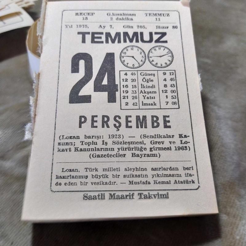 24 TEMMUZ 1975 SAATLİ MAARİF TAKVİM YAPRAĞI, en son 1 yıl önce güncellenmiştir.