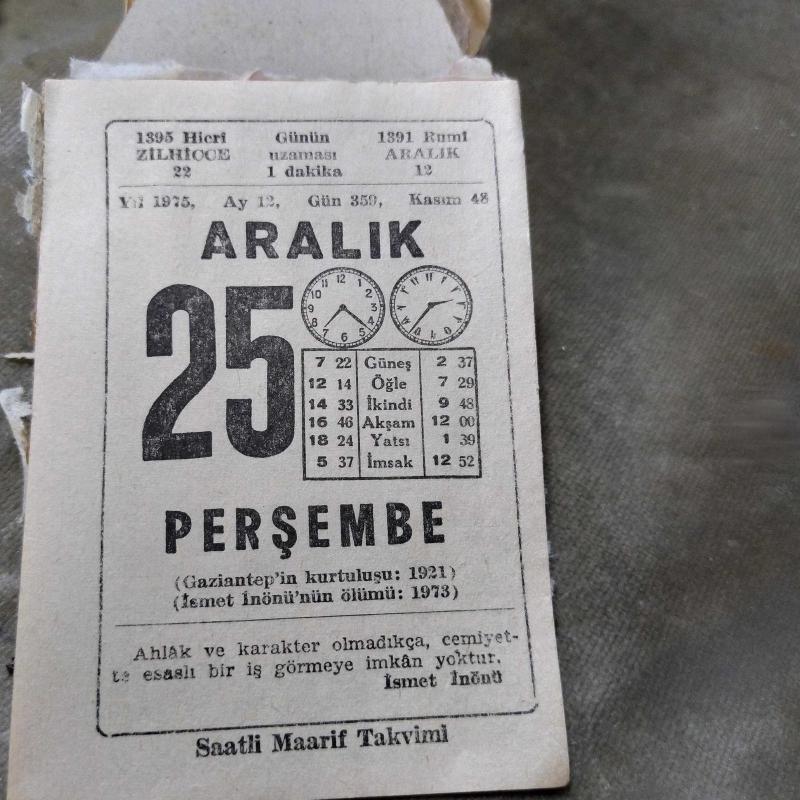 25 ARALIK 1975 SAATLİ MAARİF TAKVİM YAPRAĞI, en son 1 yıl önce güncellenmiştir.
