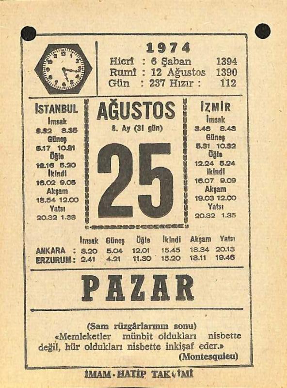 25 Ağustos 1974 Takvim Yaprağı - Doğum Günü Hediyesi EFM(N)12182, en son 21 gün önce güncellenmiştir.