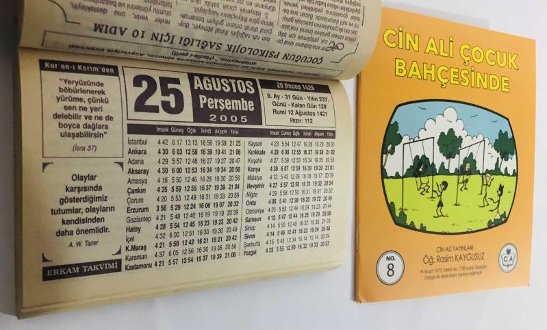 25 Ağustos 2005 hediyelik orijinal Erkam takvim yaprağı (Cin Ali kitabı hediyeli:) başlıklı ürün, Efemera, Müzik, Sinema > Belge ve Evraklar > Takvimler kategorisi altında İkinci El olarak satılmaktadır.