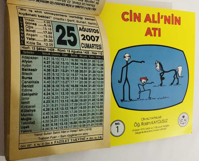 25 Ağustos 2007 hediyelik orijinal Fazilet takvim yaprağı (Cin Ali kitabı hediyeli:), 3 yıl önce satışa sunulmuştur.
