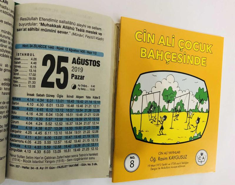 25 Ağustos 2019 hediyelik orijinal Fazilet takvim yaprağı (Cin Ali kitabı hediyeli:), 3 yıl önce satışa sunulmuştur.