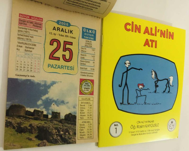 25 Aralık 2006 hediyelik orijinal Ülkü takvim yaprağı (Cin Ali kitabı hediyeli:) başlıklı ürün, Efemera, Müzik, Sinema > Belge ve Evraklar > Takvimler kategorisi altında İkinci El olarak satılmaktadır.