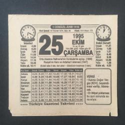 25 EKİM 1995 -TAKVİM YAPRAĞI-DOĞUM GÜNÜ HEDİYESİ-TÜRKİYE GAZETESİ TAKVİMİ,ORTA ANADOLU RAFİNERİSİNİN KIRIKKALEDE AÇILIŞI 1986,RUSYANIN KARS VE ARDAHANI İSTEMESİ 1947,TESTİ KEBABI,AĞAÇLAR