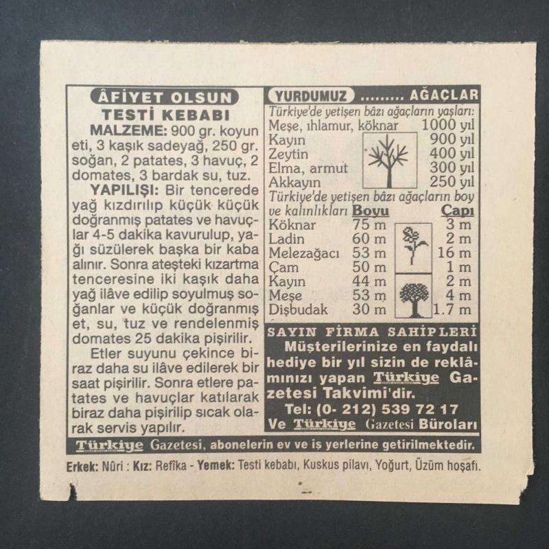 25 EKİM 1995 -TAKVİM YAPRAĞI-DOĞUM GÜNÜ HEDİYESİ-TÜRKİYE GAZETESİ TAKVİMİ,ORTA ANADOLU RAFİNERİSİNİN KIRIKKALEDE AÇILIŞI 1986,RUSYANIN KARS VE ARDAHANI İSTEMESİ 1947,TESTİ KEBABI,AĞAÇLAR, en son 8 ay önce güncellenmiştir.