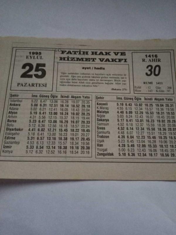 25 Eylül 1995-Orijinal Takvim Yaprağı-Doğum Günü-Söz,Nişan,Nikâh,Düğün ve Önemli Günler Hediyesi-Fatih Hak ve Hizmet Vakfı-Ayet/Hadis(Bakara:271)-(Dünden Devam)-Togliatti-Alet Kullanmak, 25 gün önce satışa sunulmuştur.