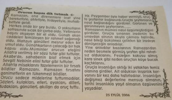 25 Eylül 2006-Orijinal Takvim Yaprağı-Doğum Günü-Söz,Nişan,Nikâh,Düğün ve Önemli Günler Hediyesi-Bizim Anadolu Takvimleri-Ayet(Bakara:187)-Niğbolu zaferi(1396)Ferhan,Müleyke-Orucun Başını Dik Tutmak-I, dün satışa sunulmuştur.