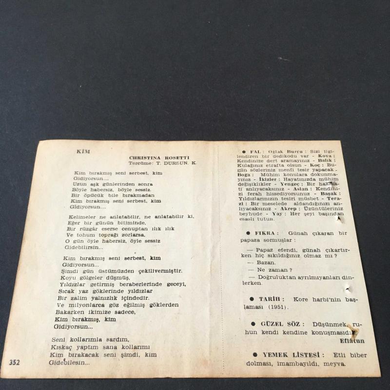 25 HAZİRAN 1958 -TAKVİM YAPRAĞI-DOĞUM GÜNÜ HEDİYESİ-AJANS-TÜRK ŞİİRLİ VE SAATLİ TÜRKİYE TAKVİMİ,VASIF,CHRİSTİNA ROSETTİ,FAL,FIKRA,KORE HARBİNİN BAŞLAMASI 1951,GÜZEL SÖZ,YEMEK LİSTESİ, en son 8 ay önce güncellenmiştir.