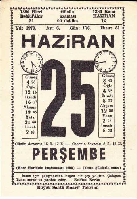 25 HAZİRAN 1970 SAATLİ MAARİF TAKVİMİ YAPRAĞI, en son 1 yıl önce güncellenmiştir.