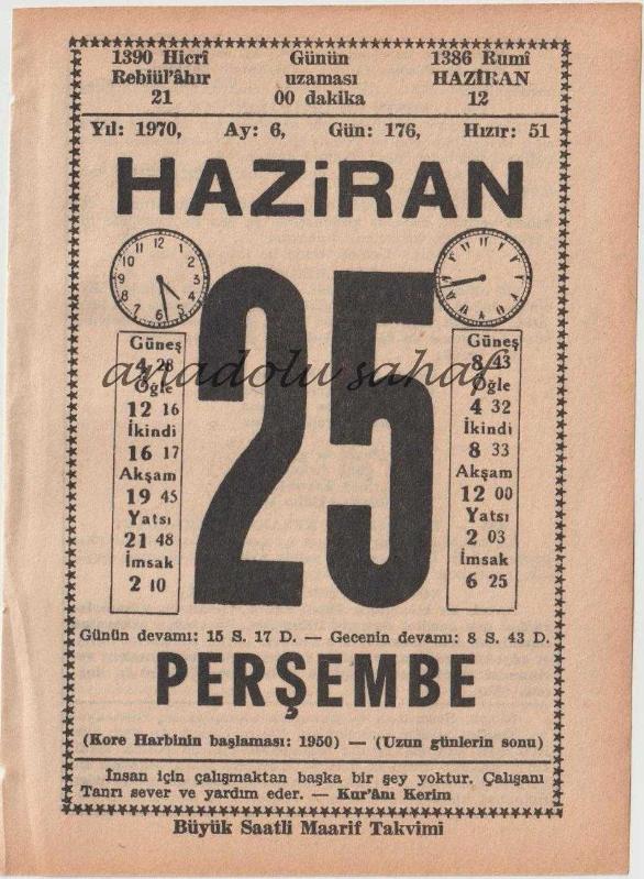 25 Haziran 1970 / Büyük Saatli Maarif Takvimi