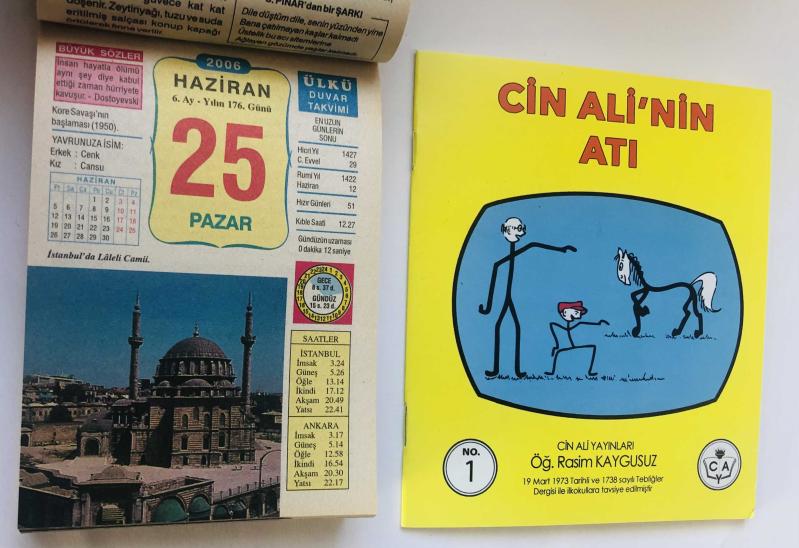 25 Haziran 2006 hediyelik orijinal Ülkü takvim yaprağı (Cin Ali kitabı hediyeli:) başlıklı ürün, Efemera, Müzik, Sinema > Belge ve Evraklar > Takvimler kategorisi altında İkinci El olarak satılmaktadır.