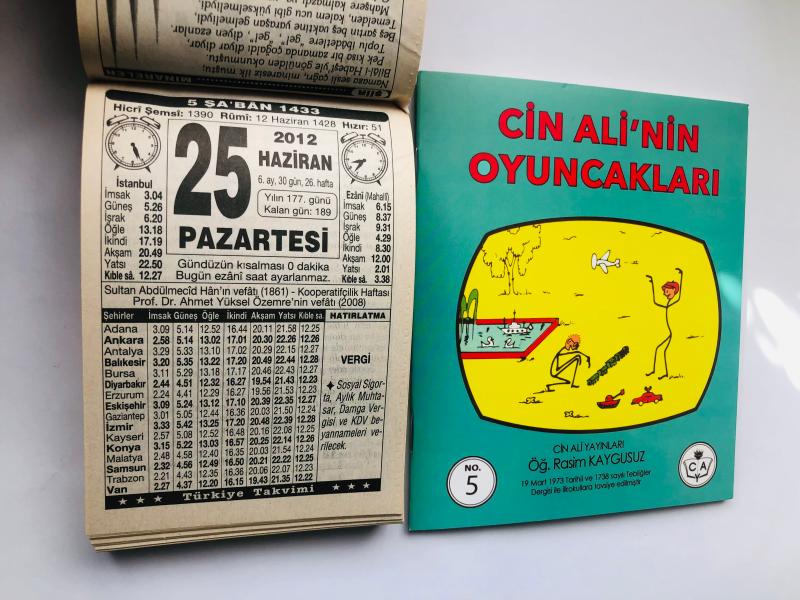 25 Haziran 2012 hediyelik orijinal Türkiye takvim yaprağı (Cin Ali kitabı hediyeli:) başlıklı ürün, Efemera, Müzik, Sinema > Belge ve Evraklar > Takvimler kategorisi altında İkinci El olarak satılmaktadır.